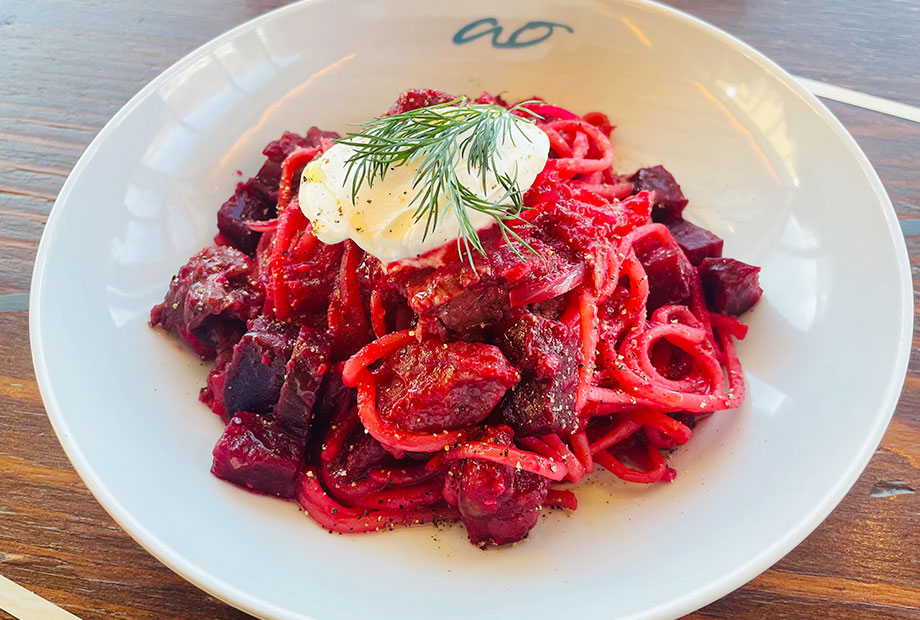 ウクライナ料理のボルシチをパスタで表現。